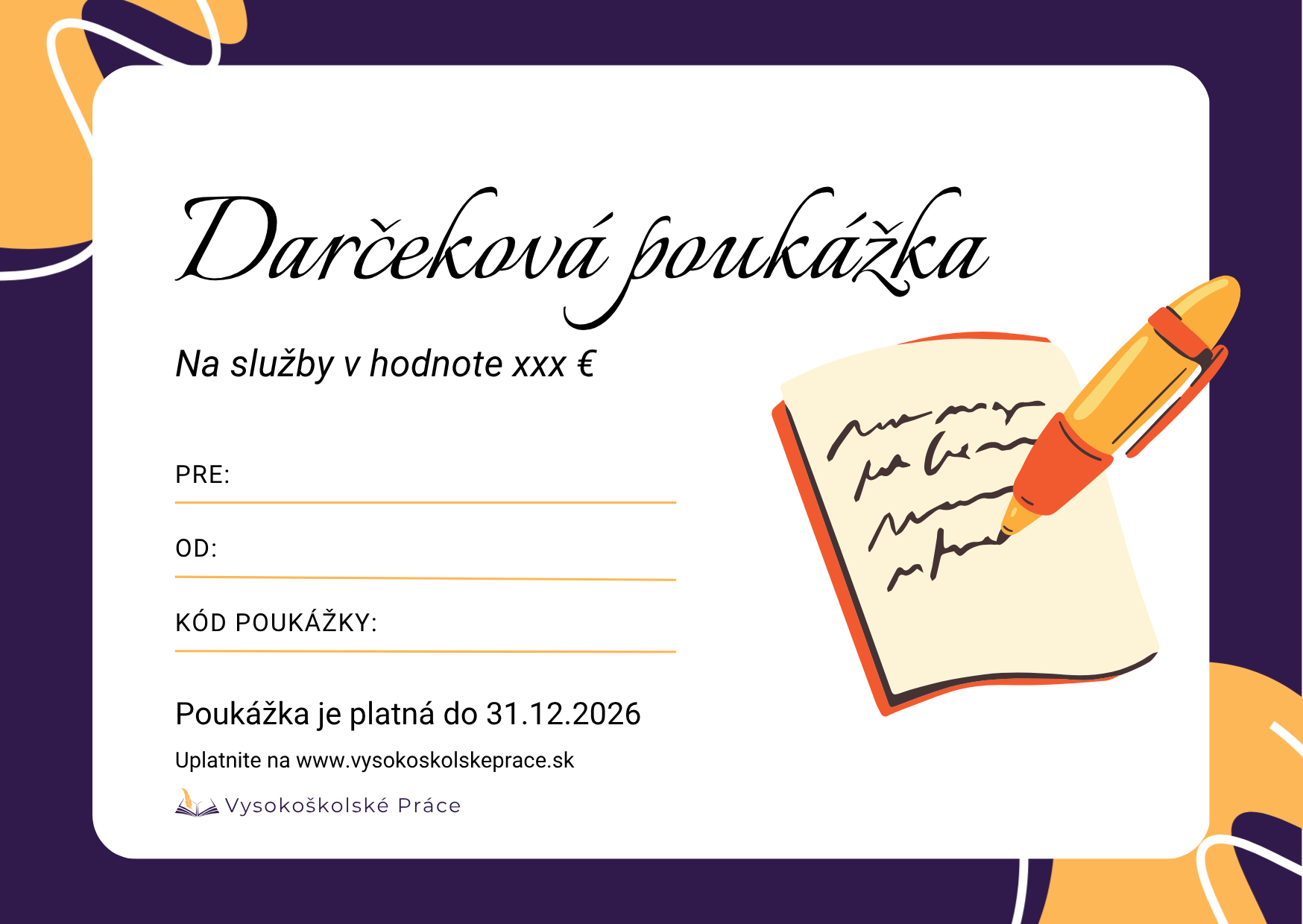 Záujemcom ponúkame darčekové poukážky na naše služby. Sú v ľubovoľnej hodnote a pripravujeme ich na mieru. Platba prebieha vopred bankovým prevodom a pripravené na použitie ich zasielame po úhrade e-mailom, a to do 24 hodín od prijatia platby.